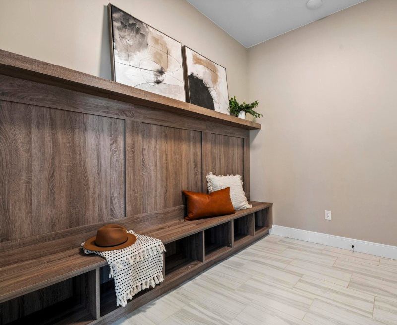 Incorporating mats, benches, or storage for wet or dirty items keeps floors cleaner.