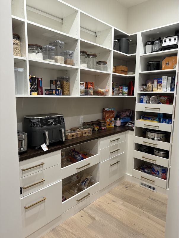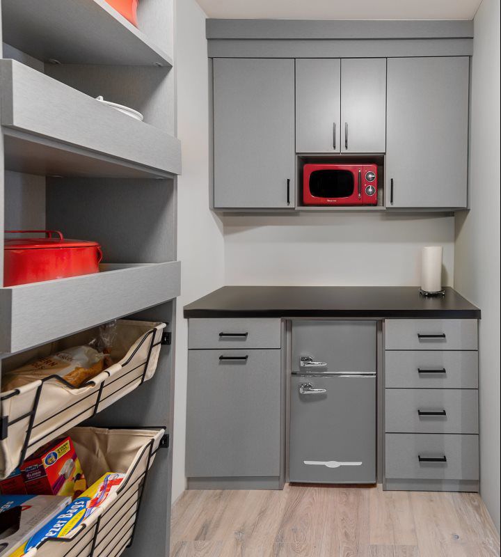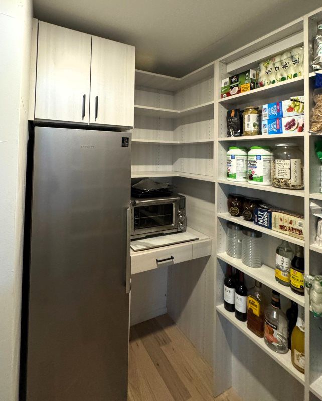Enhance your kitchen with a pantry, which offers numerous benefits in both style and functionality. It contributes to the overall aesthetics of a kitchen by allowing homeowners to customize design elements like adjustable shelves, hidden storage, and baskets. Utilizing vertical space, coordinating colors, and selecting materials that match the kitchen’s theme further elevate the visual appeal.