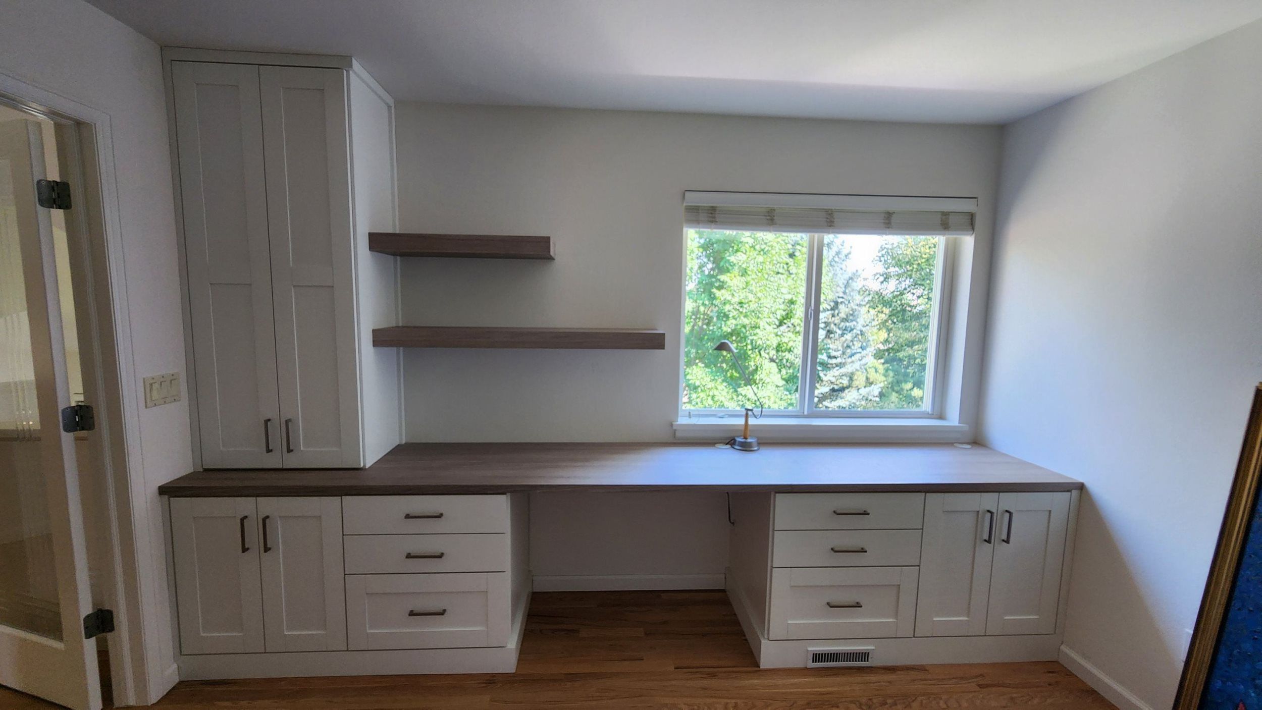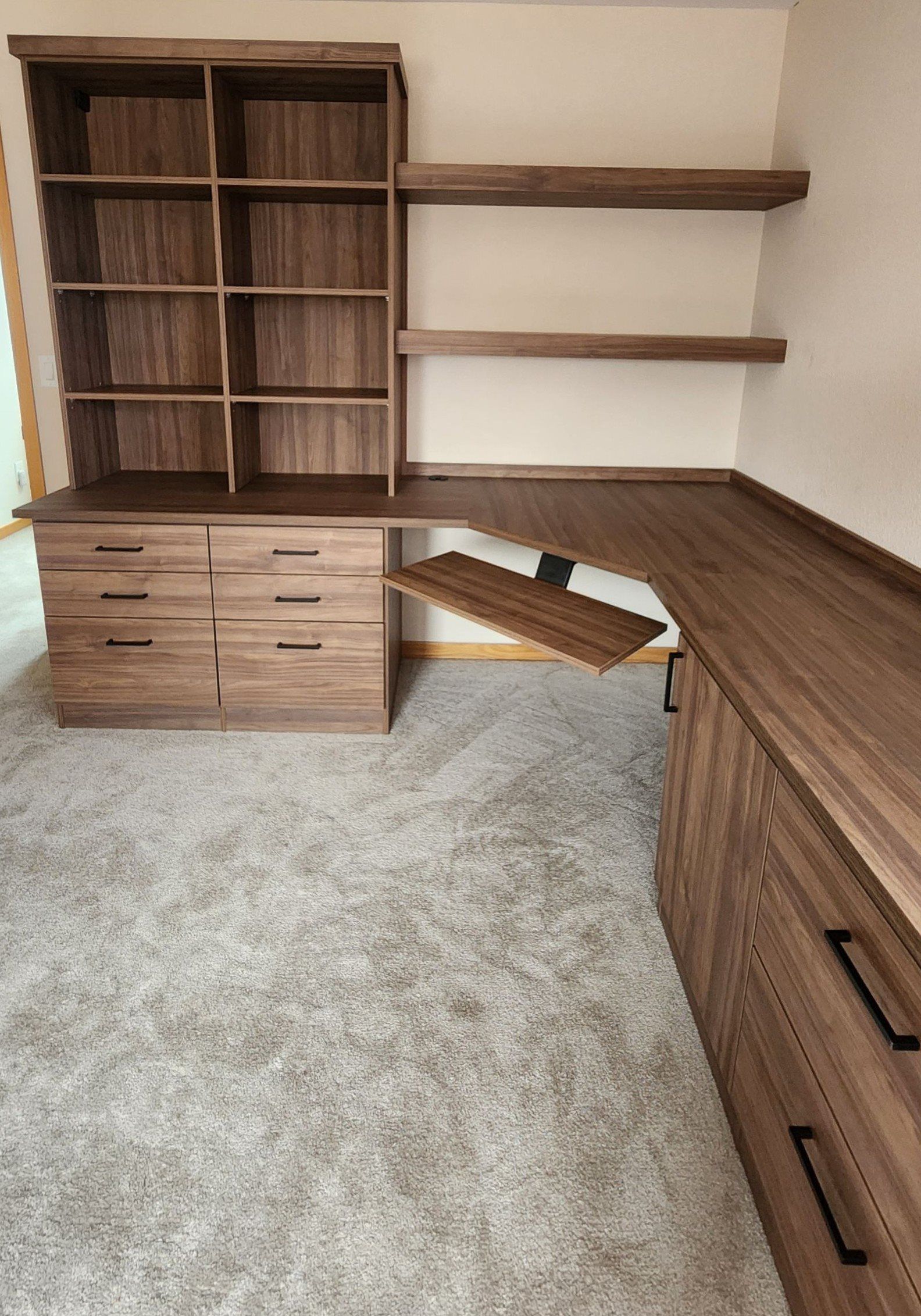 Unlike big box or off-the-shelf office furniture, custom-built pieces integrate effortlessly into your home, creating a streamlined, high-end aesthetic. From elegant wood finishes to modern minimalist designs, our custom desks, countertops, and shelving units enhance both functionality and style, making your workspace feel intentional and refined.
